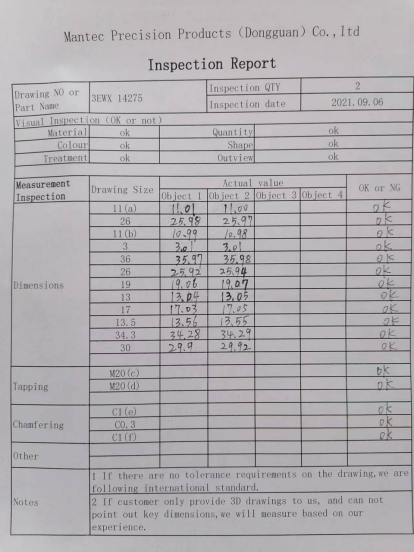 In order to offer our customers high quality products, we purchased kinds of measuring equipment, such as:digital height gauge,projector,micrometer,caliper,plug gauge, and so on. No matter we got drawings or not, we measure all the orders carefully and provide inspection report to our customers.